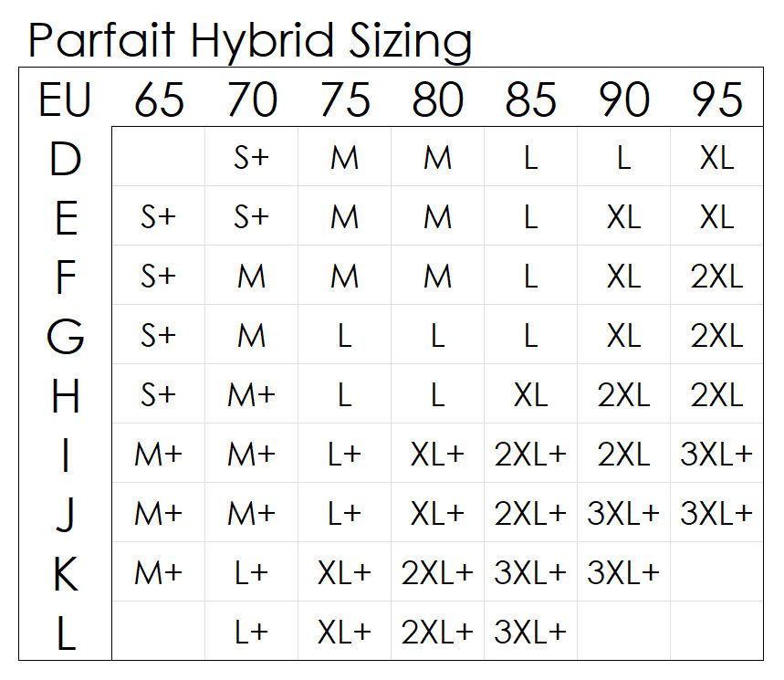 Huomioi tässä liivimallissa Parfaitin ns. hybridimitoitus, eli yksi koko kattaa useamman kuppikoon. Tarkemman suosituskokotaulukon löydät tuotekuvista.